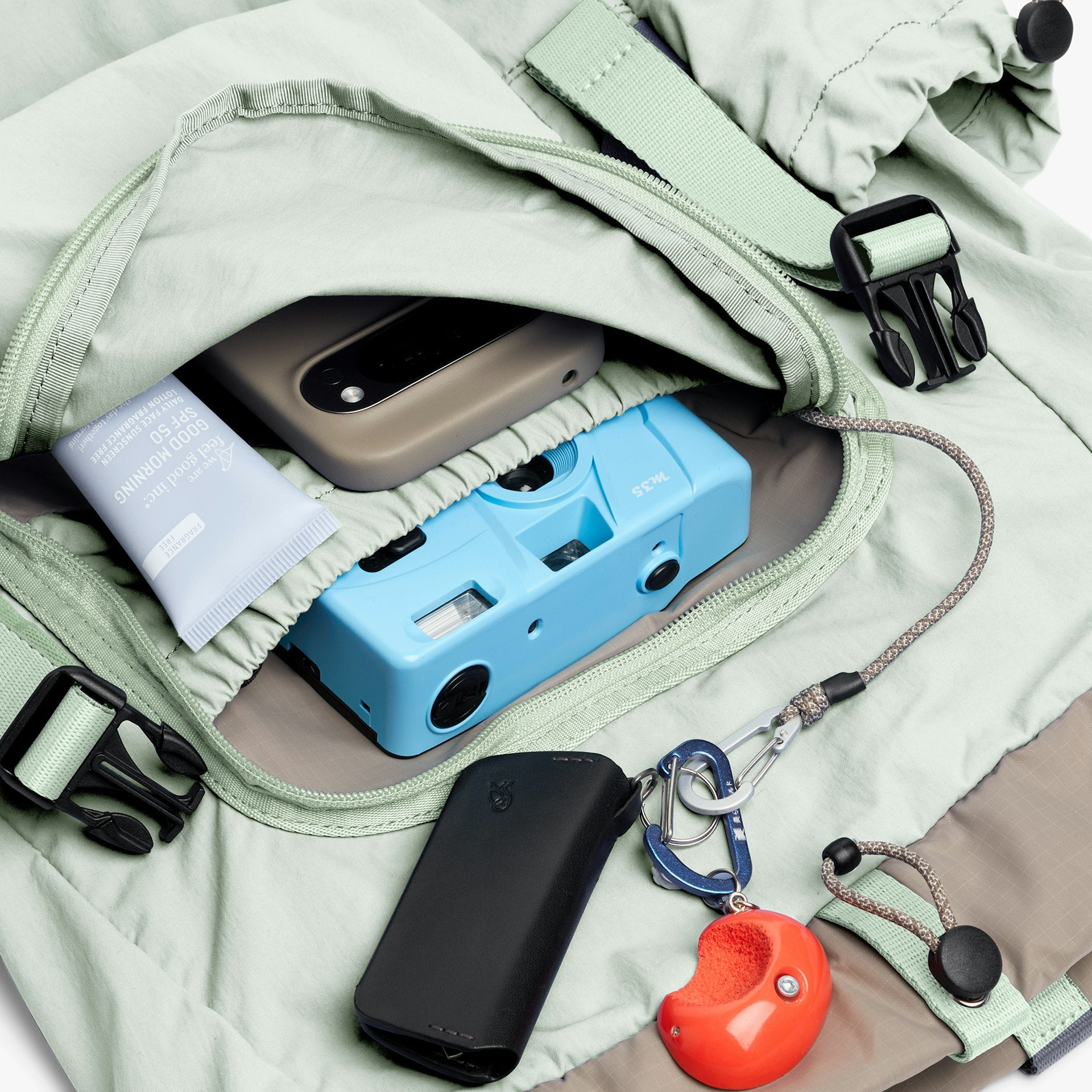 We drew inspiration from heritage daypacks, from the flaps over the top to the faded colours. We wanted it – from the moment you pick it up – to feel like a bag that has already been with you for ages.