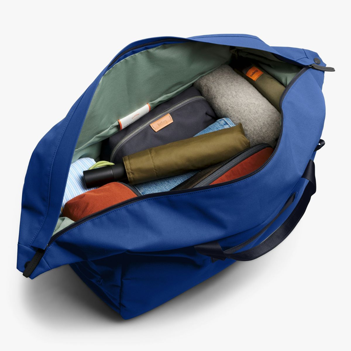 The rounded duffel shape doesn’t just look good. Its uncluttered profile reduces snags and stands up to being tossed in the trunk.