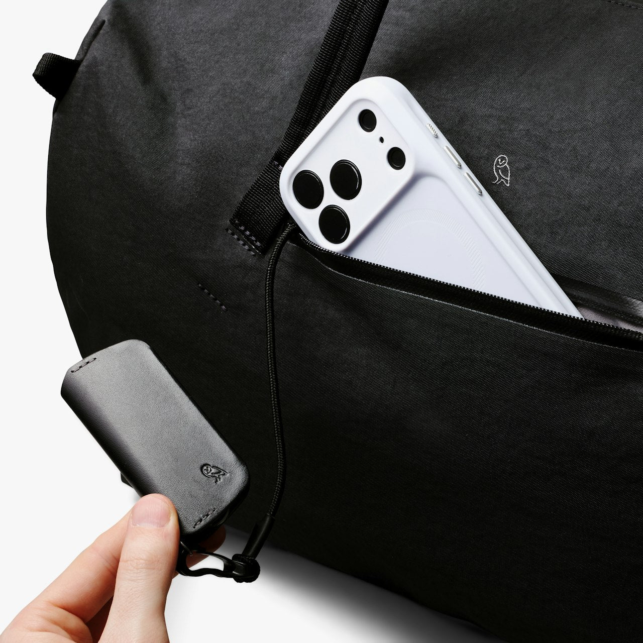 • External quick-access pocket with key clip