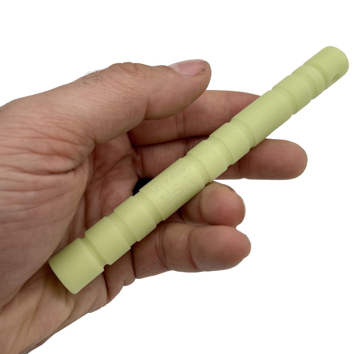 Measures 6" long and 5/8" diameter and made of super stable injection molded nylon right here in the USA.