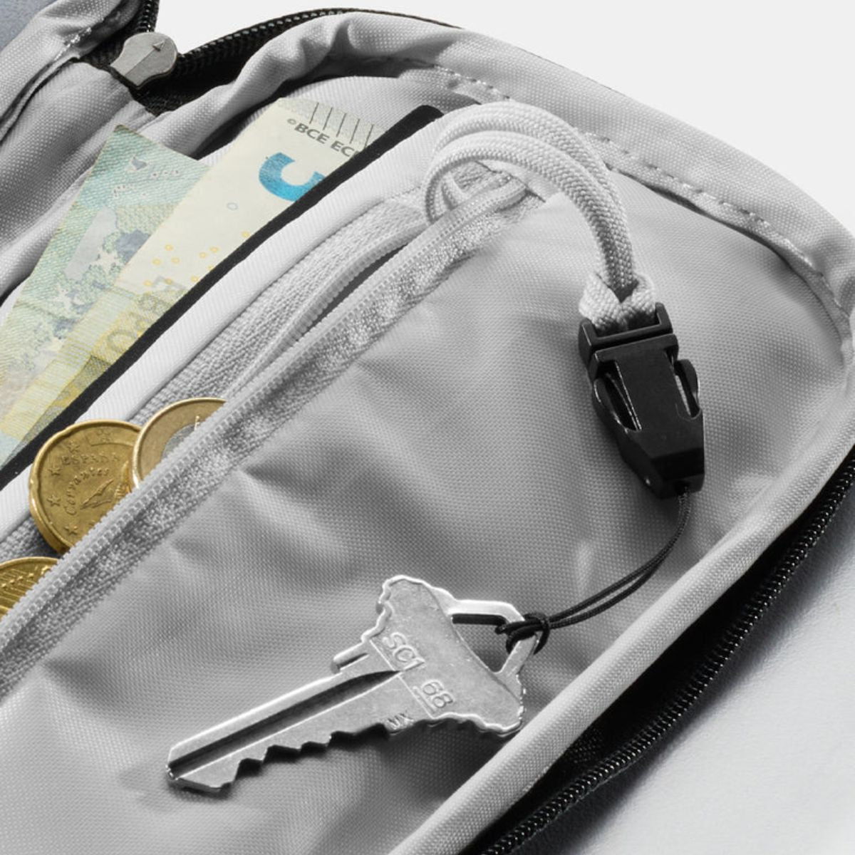 Low profile, locked down, and in-reach. The Global Travel Stash keeps track of your passport, cards, cash, and keys, so you can focus on the good stuff.