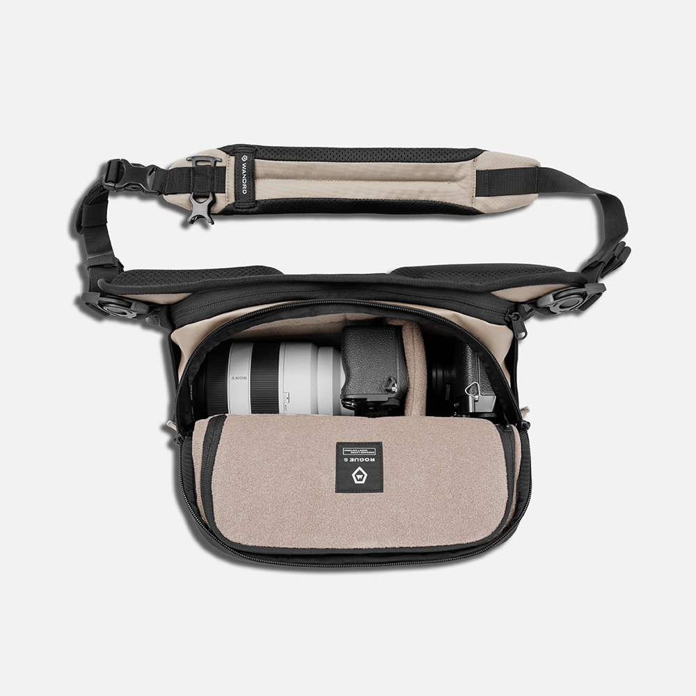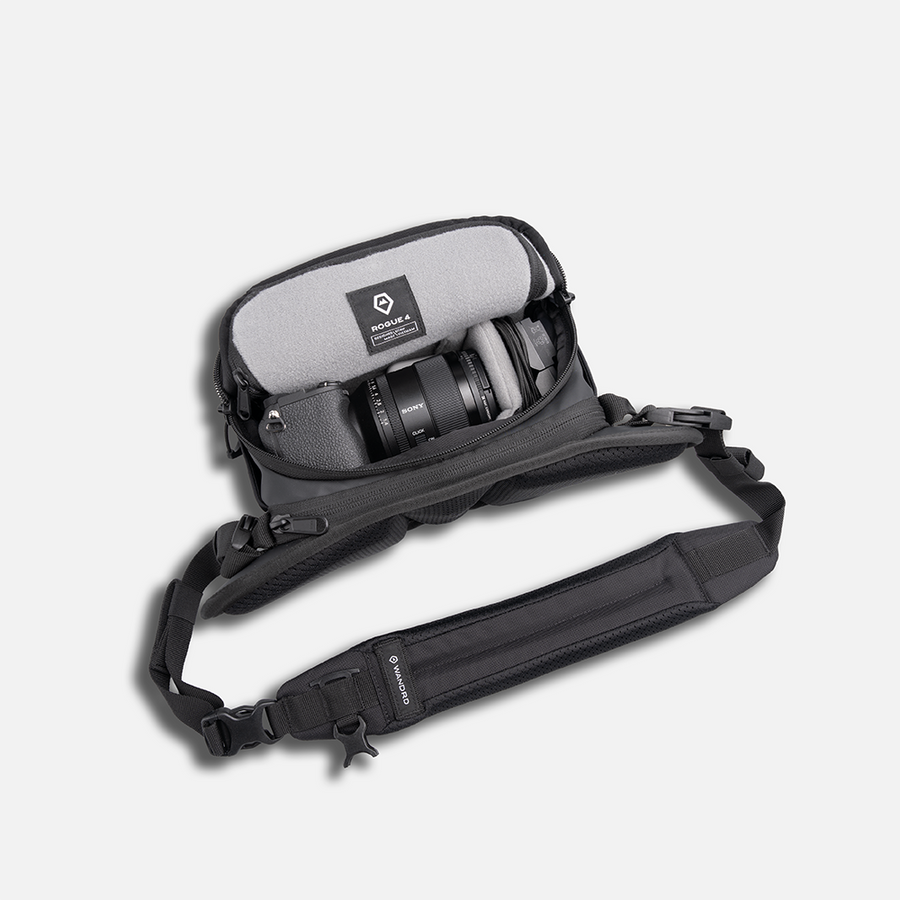Meet the all-new ROGUE 4L—the next evolution of our cult-favorite compact camera sling—built for the few and redesigned for more space, smarter organization, and all-day comfort. If you stay on the trails, draw inside the lines, and aren't obsessed with the marriage of style and comfort, this sling isn't for you. We increased the volume from 3L to 4L without adding bulk, providing extra room for your gear while maintaining the same low-profile feel. This increase in size was deliberately engineered and obsessively tested to accommodate a wider array of cameras, including the Fuji X100V, Fuji XT-5 with 18-55mm F/2.8-4, and Sony A7C with 24mm f/2.8, 40mm f/2.5, or 50mm f/2.5 G lenses.